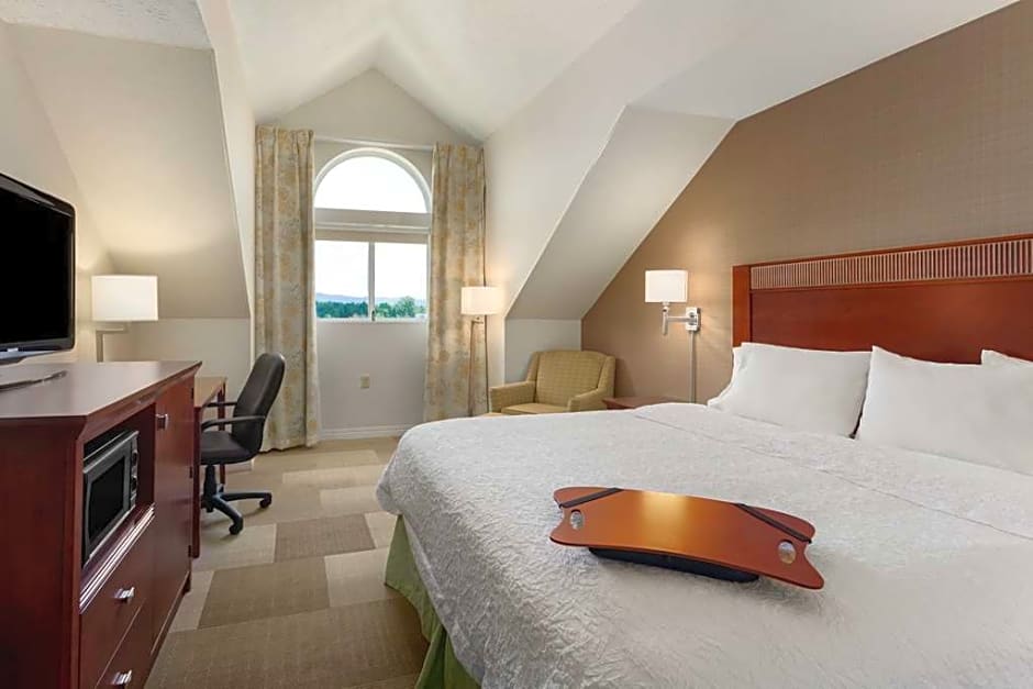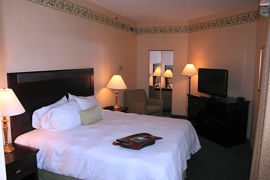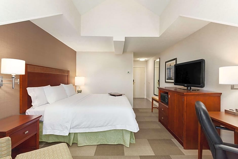 Non-Smoking, Microwave, mini-refrigerator, sofa bed, 37-inch LCD TV, work area, free WiFi Have a relaxing stay in this king room that features our clean and fresh Hampton bed®. Unwind on a plush sofa bed while watching the 37-inch LCD TV. Stay productive at the spacious desk and keep in touch with free WiFi. The room includes a microwave, a mini-refrigerator and a tea/coffeemaker to help you feel at home. In the bathroom you'll enjoy fluffy towels, a WaterPik® showerhead and curved shower rod for added space and light.